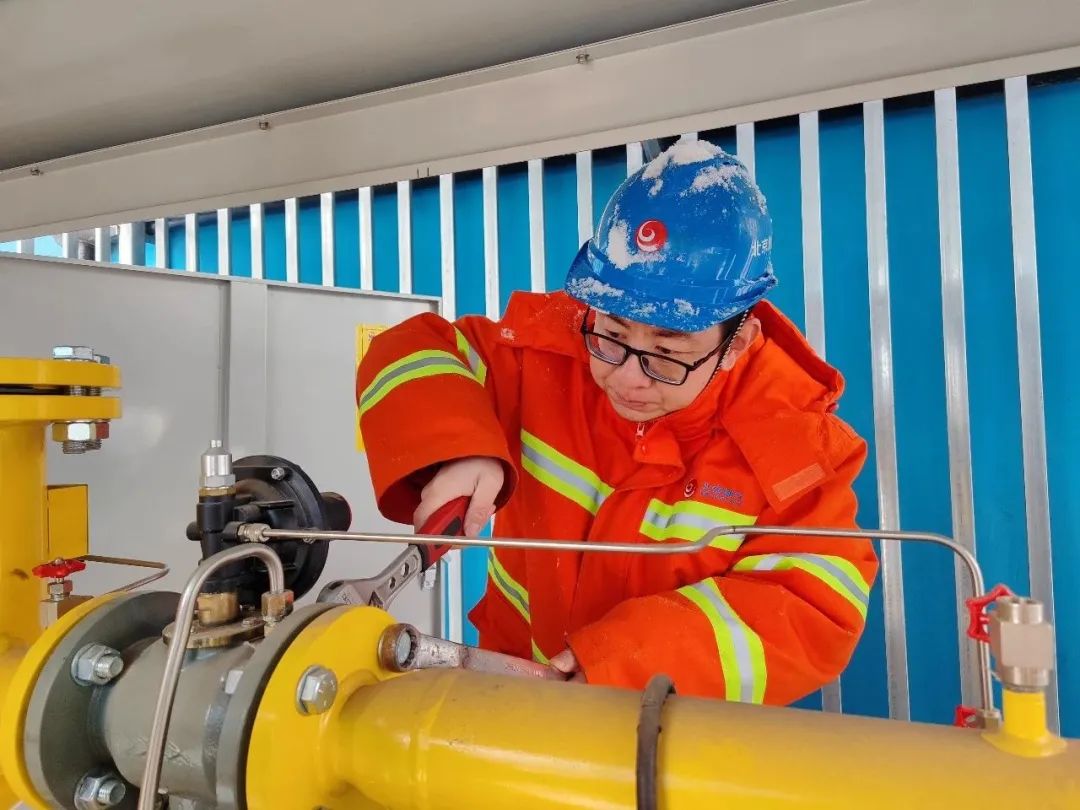 2023年12月中旬,北京迎来极寒天气,强降雪后“全能型”冷空气强势登场,带来大风、寒潮和持续低温。寒冷的天气没有阻挡燃气人的热情,运行维护一所始终抓关键、重民生,统筹做好冬供保障工作,有效落实焦化厂剩余地块保障房项目天然气工程四期安置房中压接线、启箱、通气任务,为百姓的安心入住提供生活保障。风雪中,楼间的穿堂风夹杂着细密的冰碴,将手指冻得麻木,落在纸上,打湿了一页页记录纸。燃气职工一刻不敢放松,紧盯作业现场,详细记录作业步骤。“焦化厂剩余地块保障房项目准备开始作业,大家雪天作业一定要注意安全,路面结冰小心脚底打滑。”班长的叮嘱不时从对讲机中传来。由于低压线较多,置换时间较平日更长,天色变暗路灯亮起,将人影拉长,几簇黑影重叠在一起,彼此支撑、共同前行。待通气完毕,已近深夜零点,纵使天寒地冻,职工们依旧斗志不减,正能量满格,大家相视一笑,笑容中满是完成民生保障任务的喜悦与满足。