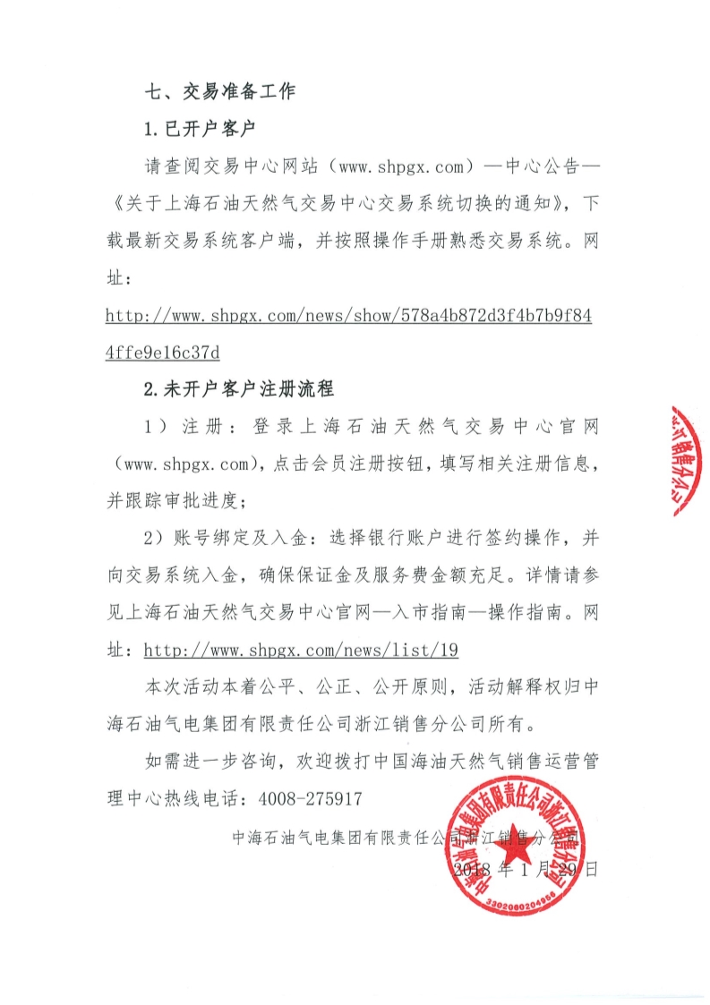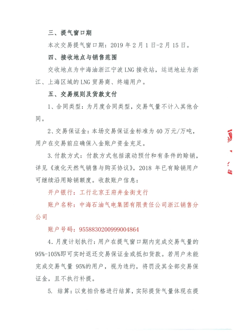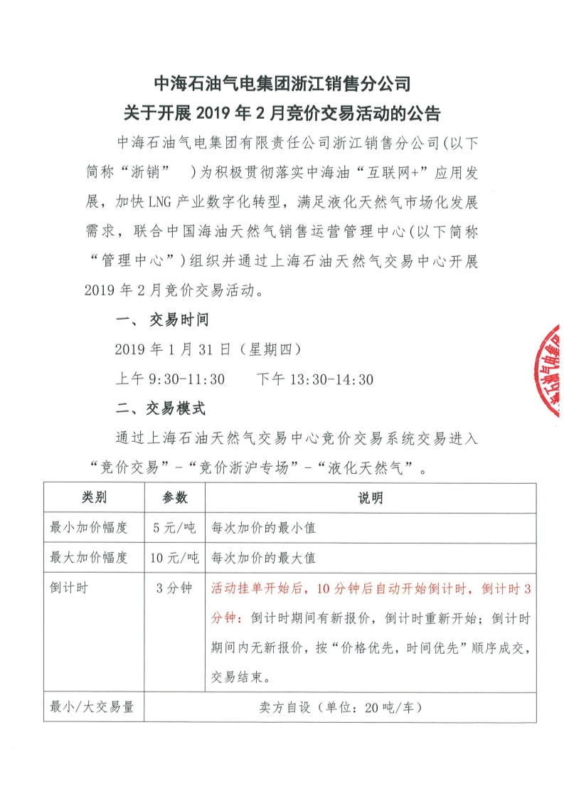中海石油气电集团浙江销售分公司关于开展2019年2月竞价交易活动的公告