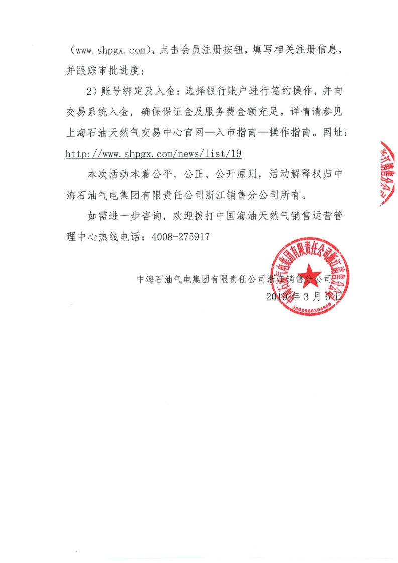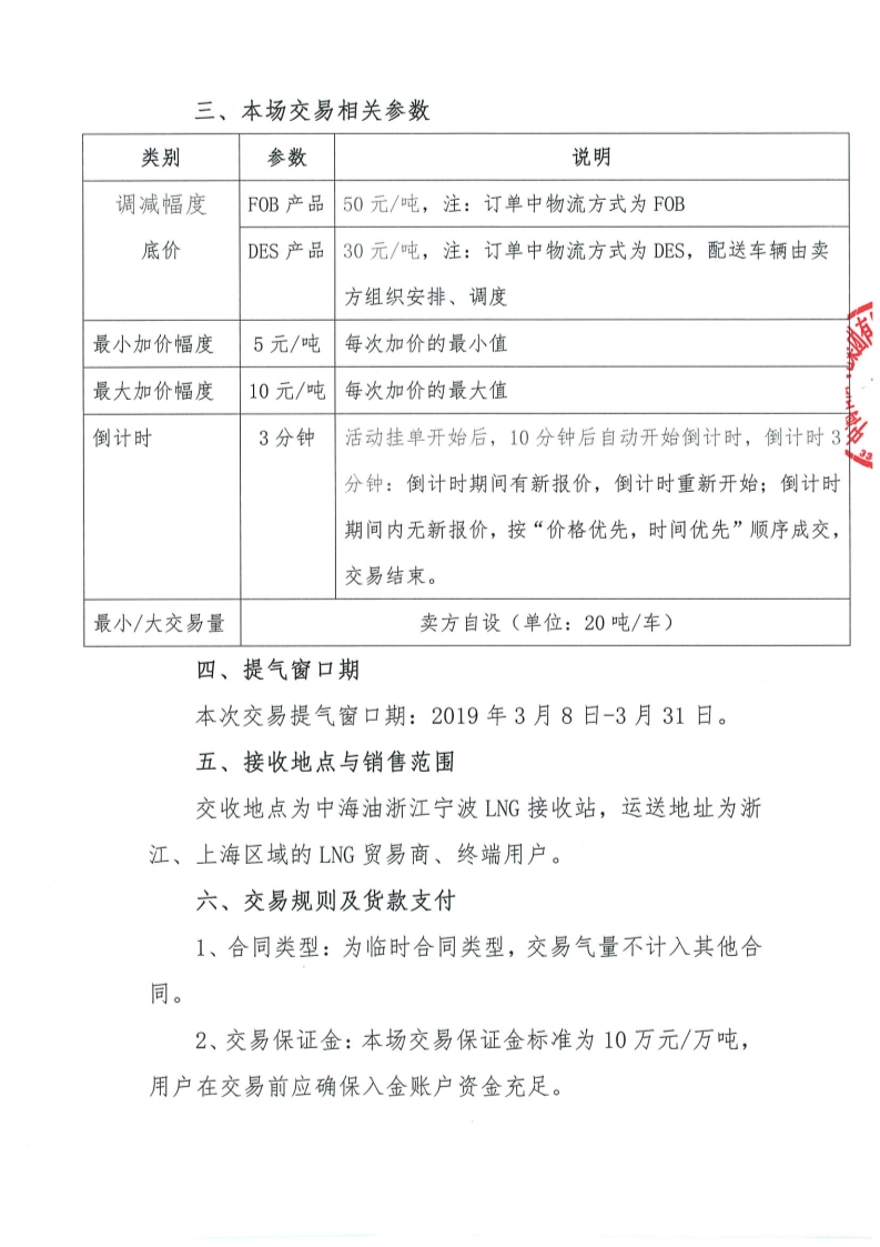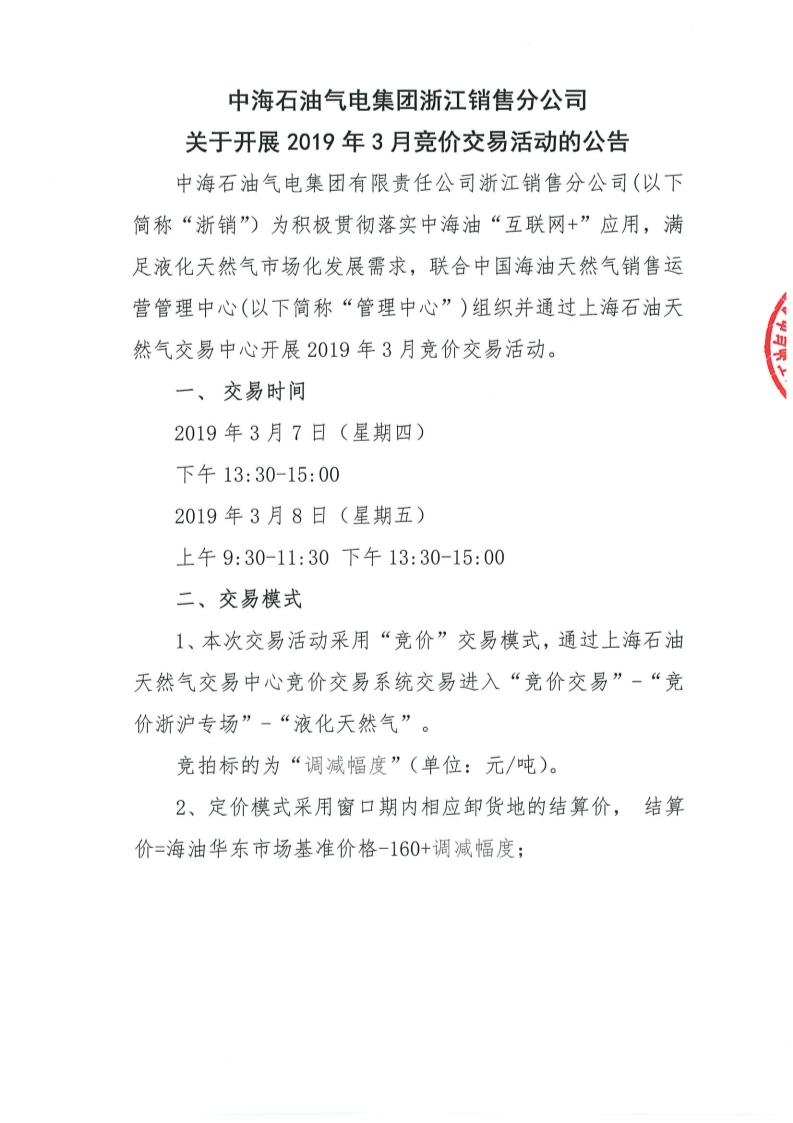 中海油浙销关于开展2019年3月竞价交易活动的公告