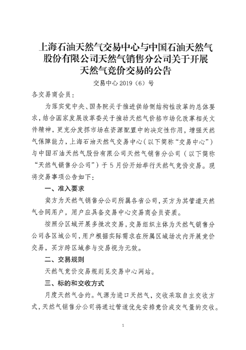 中石油与上海石油天然气交易中心联合开展天然气市场化交易