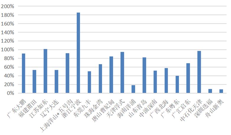 2018年我国各LNG接收站利用率如下图所示: