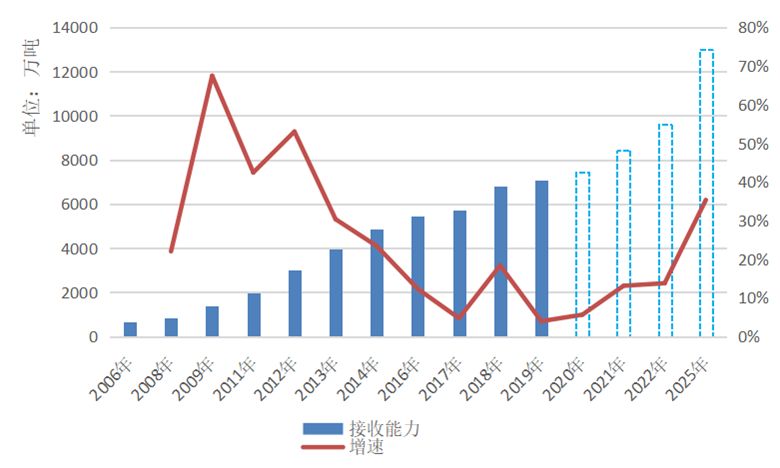 图1 我国LNG接收站接收能力和增速