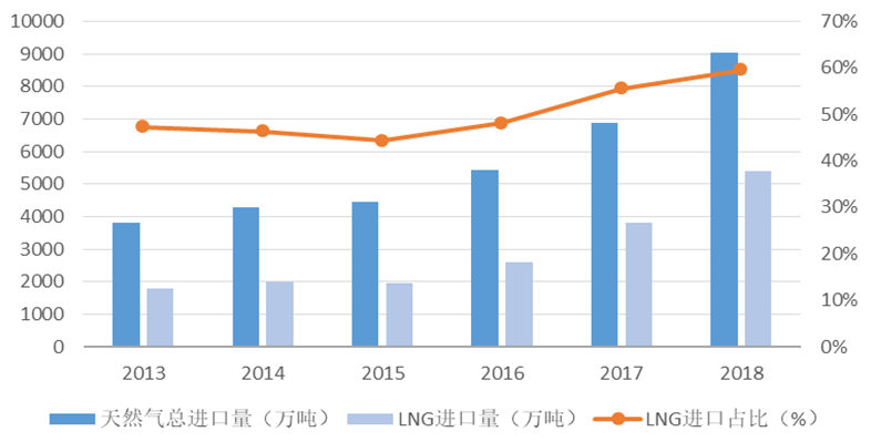 1、2018年我国LNG进口量
