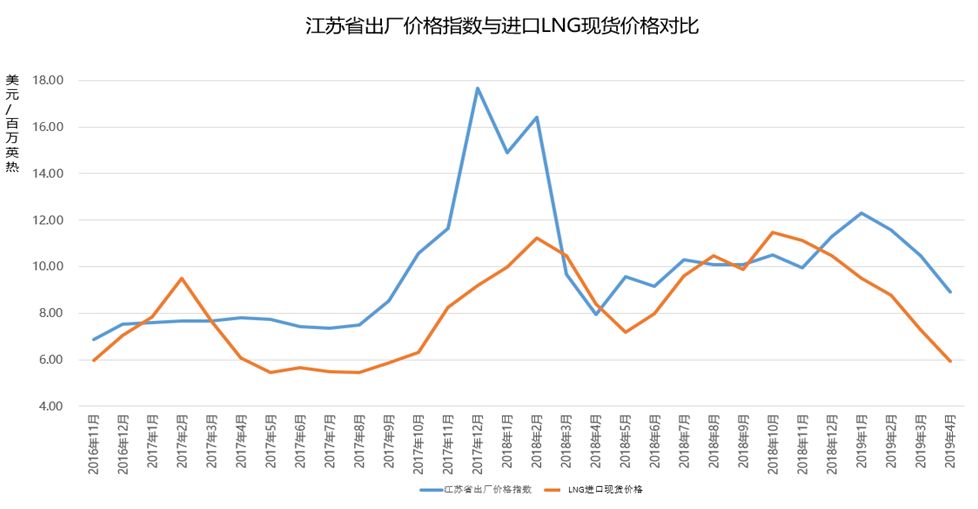 图7 近几年我国LNG进口现货价格和江苏省出厂价格