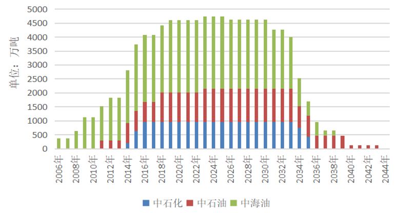 从2006年中海油广东大鹏项目签订的第一个LNG长协以来,三大石油公司、申能、新奥、九丰、广汇、华电等接收站拥有方陆续签订了5000多万吨/年LNG长协或框架协议,其中三大石油公司签订的长协大部分已经进入执行阶段,由于长协签订时间较为集中,需要到2030年左右才陆续开始到期。