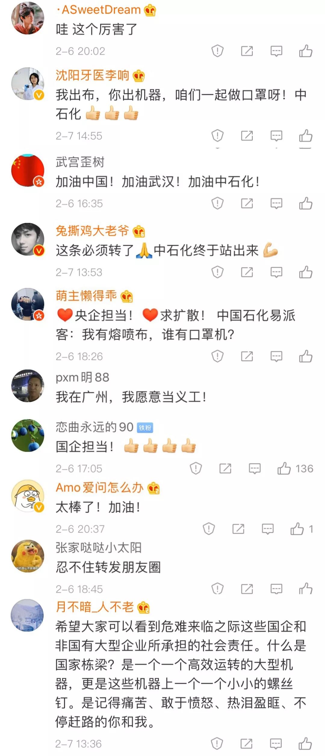 面对口罩物资紧缺的情况,中国石化将利用自身材料优势直接生产口罩,保供一线需求。对于这一举措,网友纷纷表示支持!