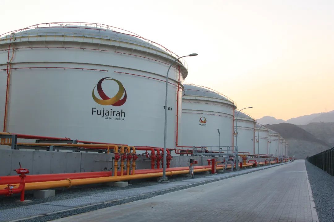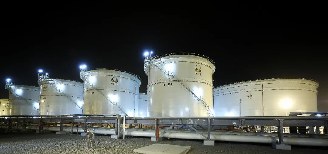 FOT是中石化境外仓储布局的首个项目,坐落于阿联酋富查伊拉石油工业园(Fujairah Oil Industry Zone)内,距离富查伊拉港口约1.2公里;建有原油、成品油储罐36个,总库容117万立方米。库区布置如下图所示。富查伊拉港位于阿曼湾沿岸,距离霍尔木兹海峡约70海里,战略位置极其重要。目前,富查伊拉港已是世界第二大船用燃料油加油港及中东地区成品油集散中心。该地区水域航道安全可靠,船只往来众多,吸引了包括孚宝、VTTI、FOT在内的13家库区来此运营。阿布扎比国家石油公司ADNOC在此亦设有120万立的原油储罐,并正在建设3个库容共约600万立方米的地下油库。