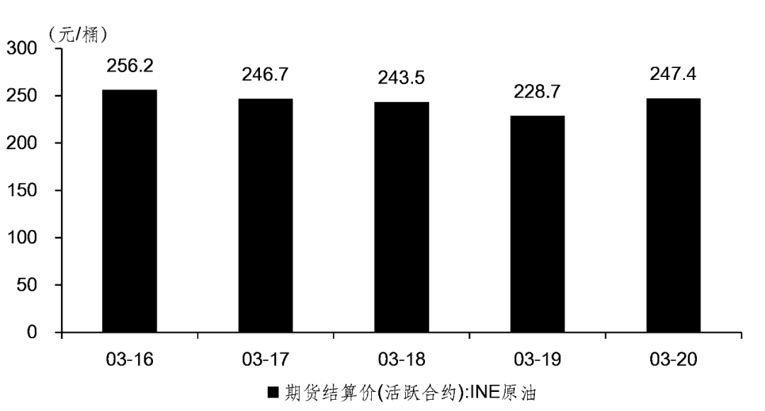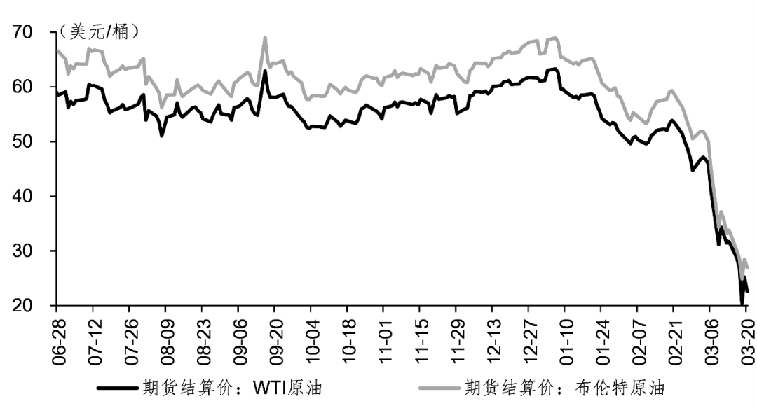 截至周五(3月20日)收盘,布伦特、WTI原油期货结算价格分别为26.98美元/桶、22.63美元/桶,一周均价分别为27.82美元/桶、24.77美元/桶,分别较前周下跌20.25%、23.40%。