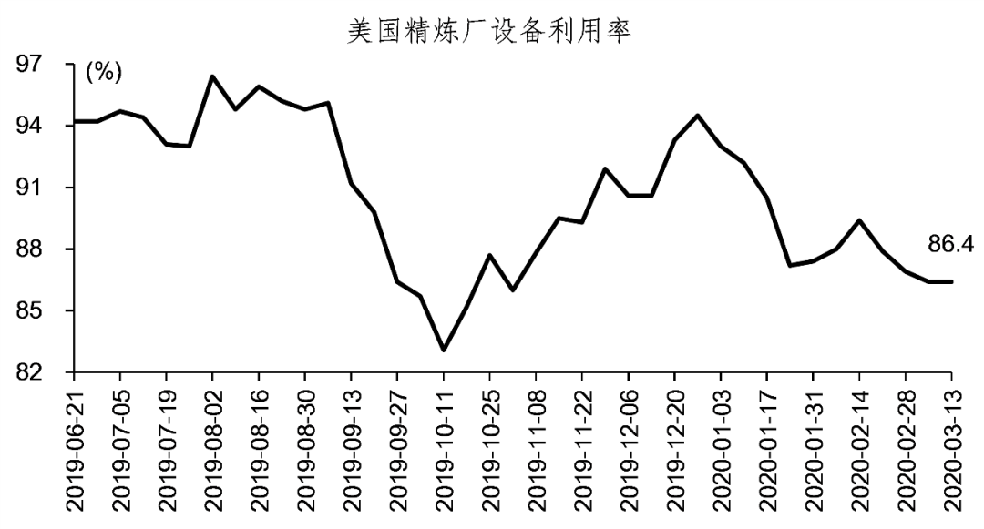 库存方面,据EIA报告,3月13日当周,美国商业原油库存增加195.4万桶,不及预期值325.6万桶。汽油和馏分油库存进一步降低。其中,汽油库存减少618万桶,馏分油库存减少294万桶。炼厂方面,设备利用率维持了与前周一致的86.4%。