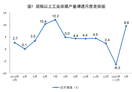 原煤生产由降转升。3月份,生产原煤3.4亿吨,同比增长9.6%,增速由负转正,1—2月份为下降6.3%; 日均产量1088万吨,比1—2月份增加273万吨。一季度,生产原煤8.3亿吨,同比下降0.5%。