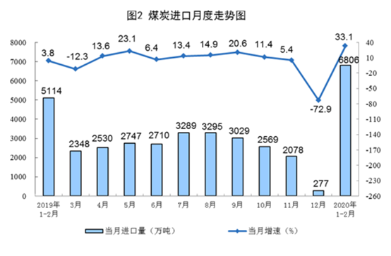 海关总署3月7日发布的数据显示,1-2月,我国进口煤及褐煤6806.0万吨,累计金额351.1亿元,进口量同比上涨33.1%,进口金额同比上涨27.8%。此次海关发布的1-2月出口数据中未披露煤炭出口情况。