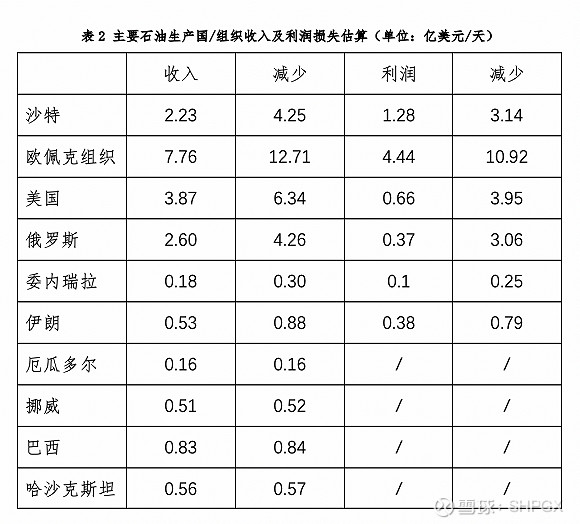 不考虑间接影响和连锁效应带来的损失,三巨头石油生产的直接收入和利润损失,估算见表2。
