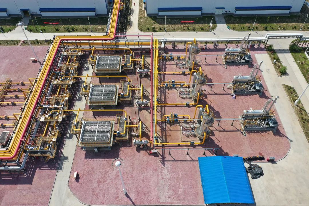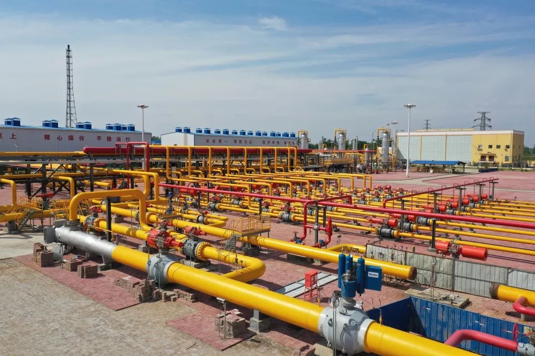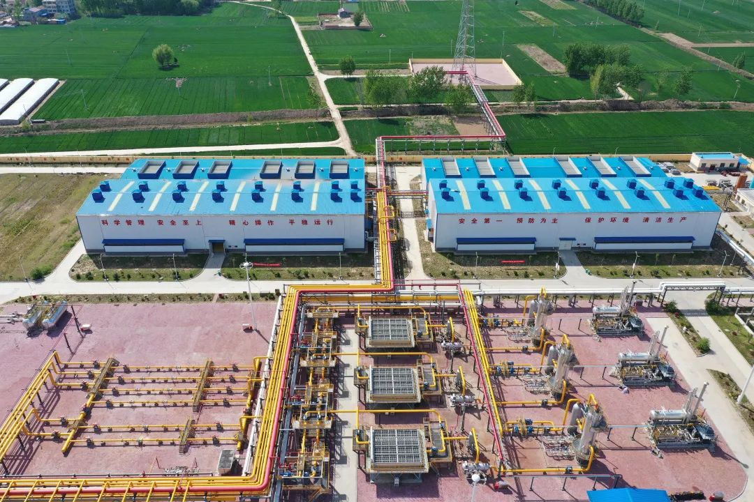 建设意义 文23储气库工程,是国家“十三五”重点工程及国家发改委产供储销体系建设重点项目。项目位于河南省濮阳市文留镇东北,是华北地区天然气设施的重要组成部分,于2019年正式投产运营,为我国中东部地区天然气安全平稳供应提供了有力保障,对改善大气环境质量、调节能源使用结构和提高人民生活水平具有积极意义。 储气库规模 文23储气库工程主要是利用已经枯竭的文23气田,通过榆济管道、中开管道、鄂安沧管道,实现与青岛LNG接收站、天津LNG接收站、鄂尔多斯气田互联互通。工程分两期建设,设计总库容104亿立方米,按照西湖库容0.14亿立方米计算,文23储气库可以注入740多个西湖水量。储气库工作气量40.31亿方,可以满足2000万户家庭用气;最大调峰能力3600万方/天,注采站总占地约127亩;配套12台国内注气压力最高,功率最大的电驱动往复式压缩机。 压缩机厂房区 进出站阀组区 注、采气工艺流程 注气时,天然气由联络线进入注采站,通过注采共用的旋风分离器、过滤分离器脱除固体杂质和水,随后经超声波流量计计量进入注气压缩机组,增压后的天然气经注气干线输送到丛式井场并通过单井注入到地层。 丛式井场 采气时,地下采出的天然气经站内采气阀组,由空冷器换热后进入旋风分离器和过滤分离器,随后进入吸收塔,经三甘醇溶液吸收满足水露点要求后,由缓冲罐进行分离,最后通过超声波流量计计量并外输到管道系统。 过滤分离区